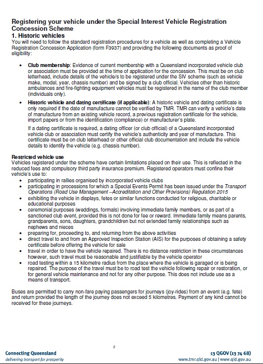 For full details about SIV concessional registration and guidelines go to the Qld Transport Department website.